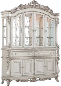 Exclusively designed and filled with romantic spirit, this hutch and buffet with oversized crown and golden ivory finish. This stylish and detailed collection is ideal for a large gathering and will add elegance to any dining room Decor.Read More