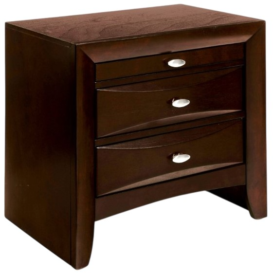 The Ireland nightstand in espresso finish keep essentials close by with 2 storage drawers and 1 pull-out tray. Pull out tray offers you additional surface area. Drawer fronts are beveled and all drawers have English dovetail with center metal glides.Read More