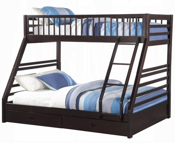 The Jason Bunk Bed is a great addition to any youth room. An extra-large twin upper bed and queen-size lower bed offer lots of space for sweet dreams. A rich, classic espresso finish gives a polished look and makes it ideal for blending with an array of different designs.Read More