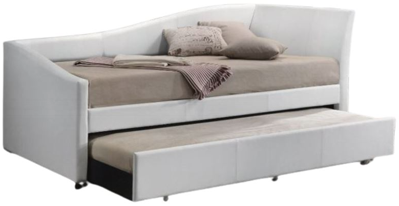 The Jedda daybed in white faux leather is excellent for a sitting room or guest bedroom. It will add a stylish look with features like a sloped frame, square wooden legs, and trundle for guests. This piece is simple and versatile enough to suit any space.Read More
