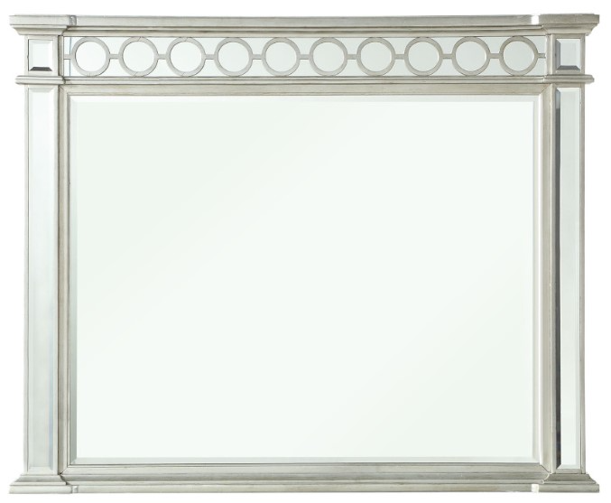 The ACME Furniture Varian Dresser Mirror features a sleek silver finish that adds a touch of glamour to any bedroom. Designed to attach to a matching dresser, its clean lines and elegant beveled edges create a refined and sophisticated look, perfect for enhancing your space with style and functionality.Read More