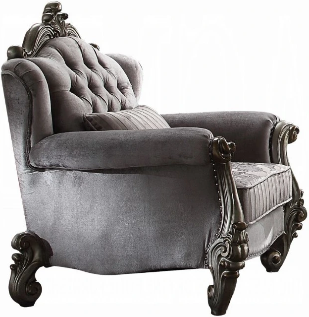 The Versailles collection with antique platinum finish will create you an elegant, warm and traditional taste in your living room. The sofa set reflects highly decorative base with scrolled feet, and the upholstered seats with the deep button tufted and Nailhead trim accents add classic character and represents luxurious detailing.Read More