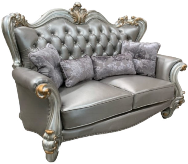 The Versailles Loveseat with antique platinum finish will create you an elegant, warm and traditional taste in your living room. The sofa set reflects highly decorative base with scrolled feet, and the upholstered seats with the deep button tufted and nailhead trim accents add classic character and represents luxurious detailing.Read More