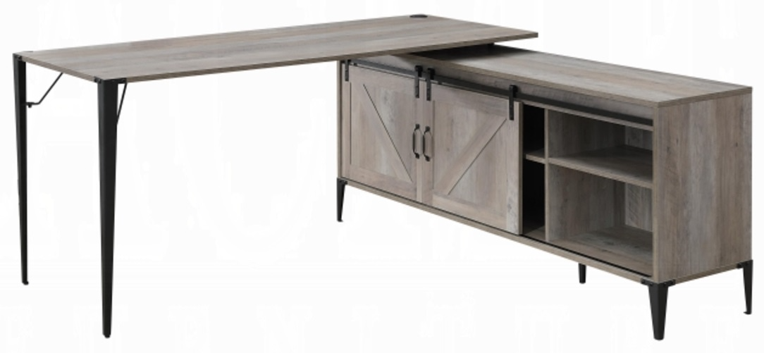 Give you a cozy and personal style workspace that surrounds you with everything within arm's reach. The Zakwani writing desk provides an L-shaped tabletop, and a storage cabinet on the right side features two sliding barn doors for extra privacy and style.Read More