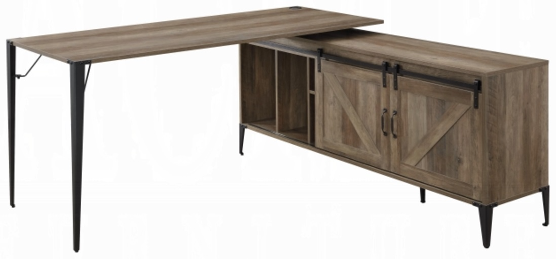 Give you a cozy and personal style workspace that surrounds you with everything within arm's reach. The Zakwani writing desk provides an L-shaped tabletop, and a storage cabinet on the right side features two sliding barn doors for extra privacy and style.Read More