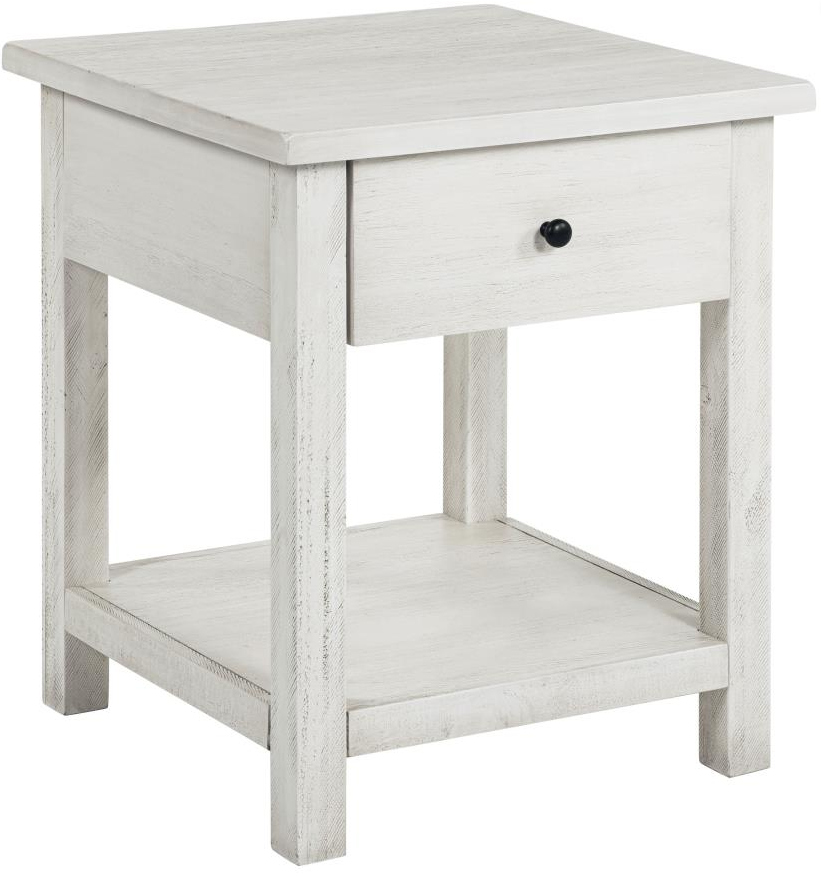 Distressed white finish enhances its worn appeal, creating a hint of farmhouse flair in your layout