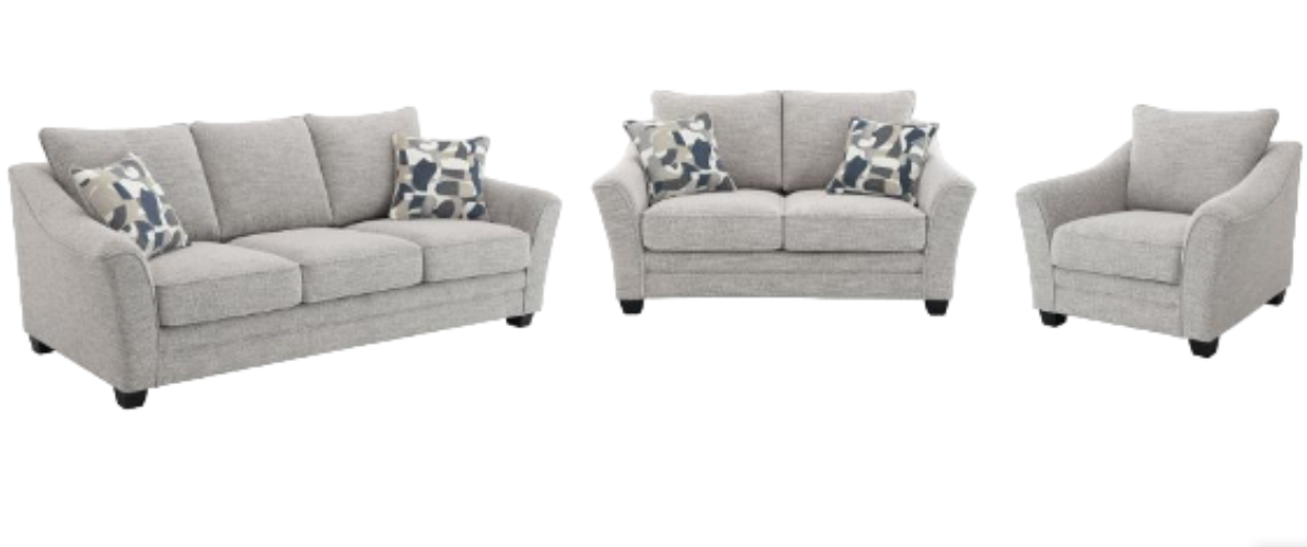 Includes: One (1) sofa, one (1) loveseat, and one (1) chair