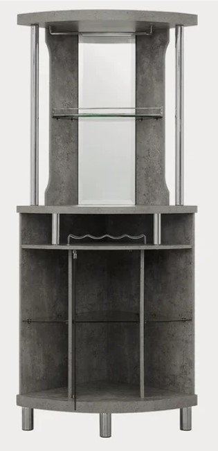 Have minimal space but still want a bar? The Home Source Corner Bar is the perfect answer for you. Featuring wine and cocktail glass storage in addition to bottle storage this piece fits perfectly into the corner of the room.Read More