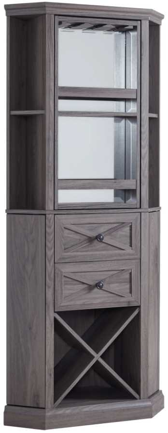 Home Source Industries Gray Corner Bar Cabinet with Rotating Wine Rack