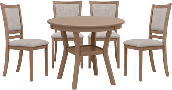 Create a bright and inviting space with this 5-piece casual dining set, thoughtfully designed to blend natural warmth with everyday functionality. The round table, finished in a soft light oak tone, showcases clean lines and gracefully flared legs that bring a sense of openness and ease to any dining area.Read More