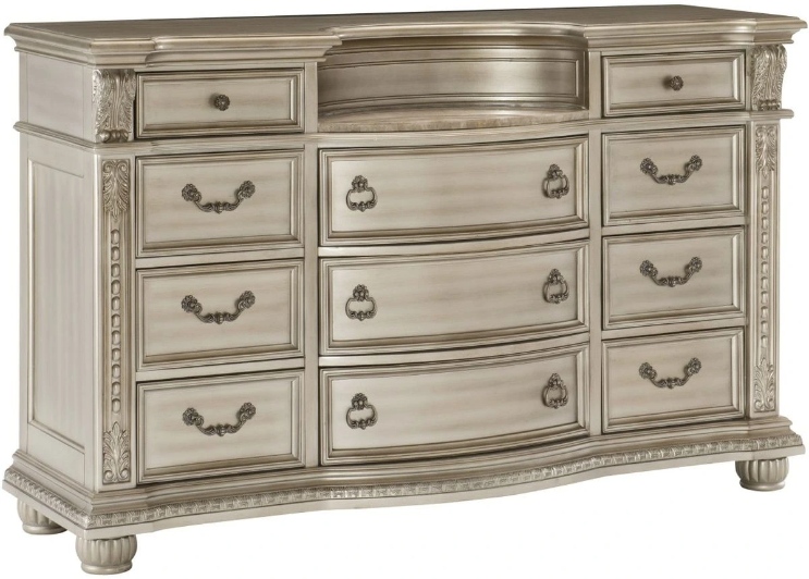 The Homelegance® Cavalier silver dresser combines elegance and functionality with its shimmering silver finish, ornate detailing, and ample storage. Featuring multiple spacious drawers and intricate hardware, it adds a touch of luxury and sophistication to any traditional or glamorous bedroom décor.Read More