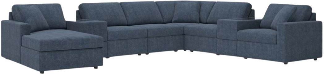 Includes 8 Modular Pieces: Left-arm facing corner chaise, 3 armless chairs, 2 consoles with storage, wedge and right-arm facing corner chair
